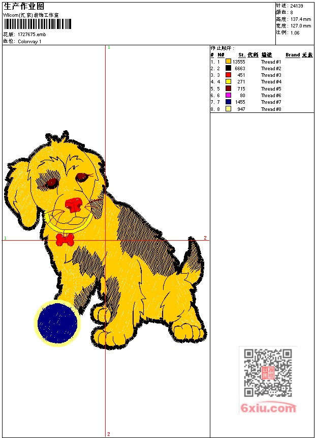 狗金毛 点此上传花版兑乐绣币/现金 emb花版参数: 大小:122.00 KB / 尺寸:127*137[毫米] / 针数:24139针 / 线色:8 / 格式:emb / 版本:e2 版带文件需绣花软件方可打开,可配色打印导出各种格式或直接上机绣。如无绣花软件可下载1:1模拟效果图。 PNG图片信息:大小:0.3 (MB) /图宽*高:481x520(像素) 上传作者( *** ) 获得乐绣币:1个 emb下载 1:1图下载 关闭 相似花型推荐: 鸟鹦鹉 卡通人物工艺精品 凤工艺精品 紫气东来工艺精品 竹子工艺精品 木屋 国旗 盾牌剑 牛 鹰头 小丑 花鹿 麒麟中国传统吉祥 马章仔 水手服美少女 上一个花样:鸟 下一个花样:鸟鹦鹉