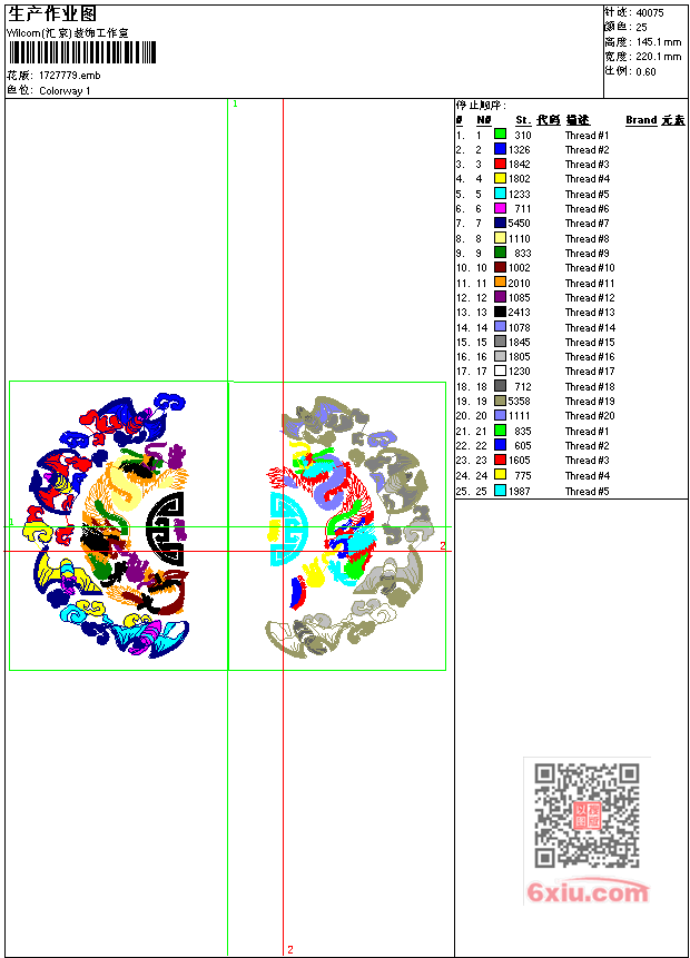 龙 点此上传花版兑乐绣币/现金 emb花版参数: 大小:186.50 KB / 尺寸:220*145[毫米] / 针数:40075针 / 线色:25 / 格式:emb / 版本:7 版带文件需绣花软件方可打开,可配色打印导出各种格式或直接上机绣。如无绣花软件可下载1:1模拟效果图。 PNG图片信息:大小:0.4 (MB) /图宽*高:833x549(像素) 上传作者( *** ) 获得乐绣币:30个 emb下载 1:1图下载 关闭 相似花型推荐: 鹰标 狗标 天使 外国法院标 印第安人 批头刁孔-雕孔 鸟花-吉祥 龙 马头 人物-财神像-恭喜发财-工艺精品 米奇 米老鼠 复杂地毯工艺精品 山水人家风景工艺精品 葡萄花工艺精品 鸟工艺精品 上一个花样:孔雀 下一个花样:鹰标
