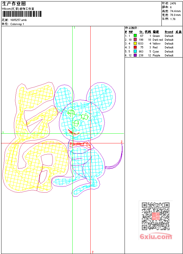 毛巾绣[GMJA6666] emb花版参数: 大小:34.00 KB / 尺寸:78*74[毫米] / 针数:2476针 / 线色:6 / 格式:emb / 版本:9 版带文件需绣花软件方可打开,可配色打印导出各种格式或直接上机绣。如无绣花软件可下载1:1模拟效果图。 PNG图片信息:大小:0.1(MB) /图宽*高:296x282(像素) emb下载 1:1图下载 关闭 相关花版: