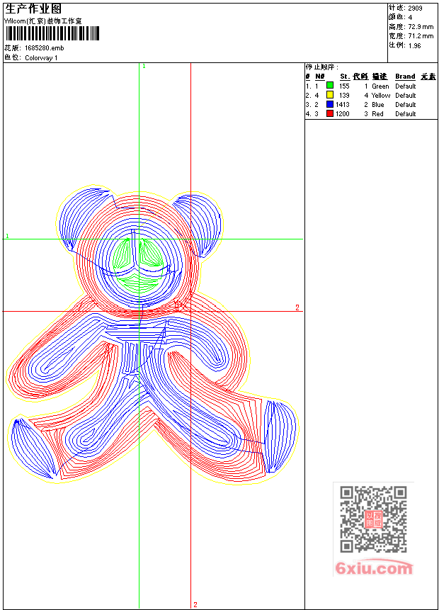 - emb花版参数: 大小:24.00 KB / 尺寸:71*73[毫米] / 针数:2909针 / 线色:4 / 格式:emb / 版本:9