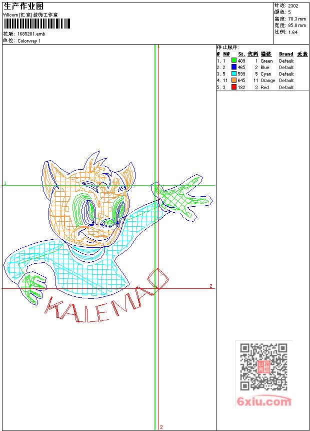 - 版带文件需绣花软件方可打开,可配色打印导出各种格式或直接上机绣。如无绣花软件可下载1:1模拟效果图。