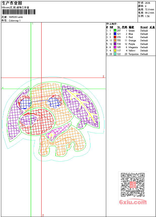 - 版带文件需绣花软件方可打开,可配色打印导出各种格式或直接上机绣。如无绣花软件可下载1:1模拟效果图。