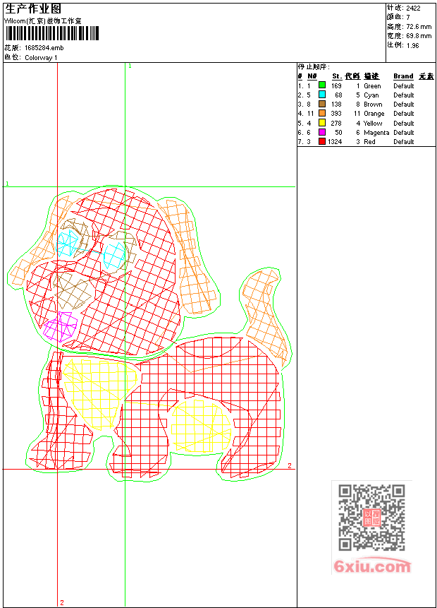 - 版带文件需绣花软件方可打开,可配色打印导出各种格式或直接上机绣。如无绣花软件可下载1:1模拟效果图。