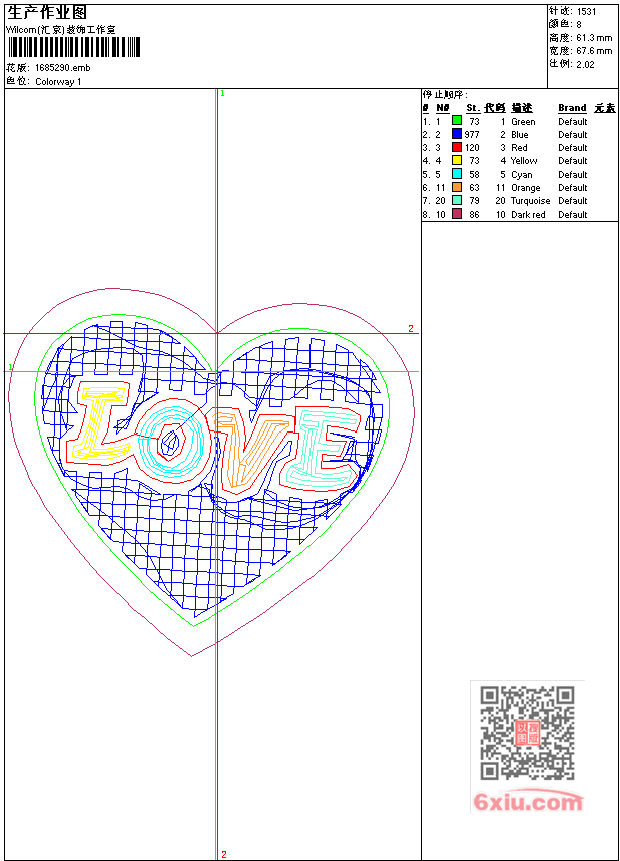 - emb花版参数: 大小:29.00 KB / 尺寸:68*61[毫米] / 针数:1531针 / 线色:8 / 格式:emb / 版本:9