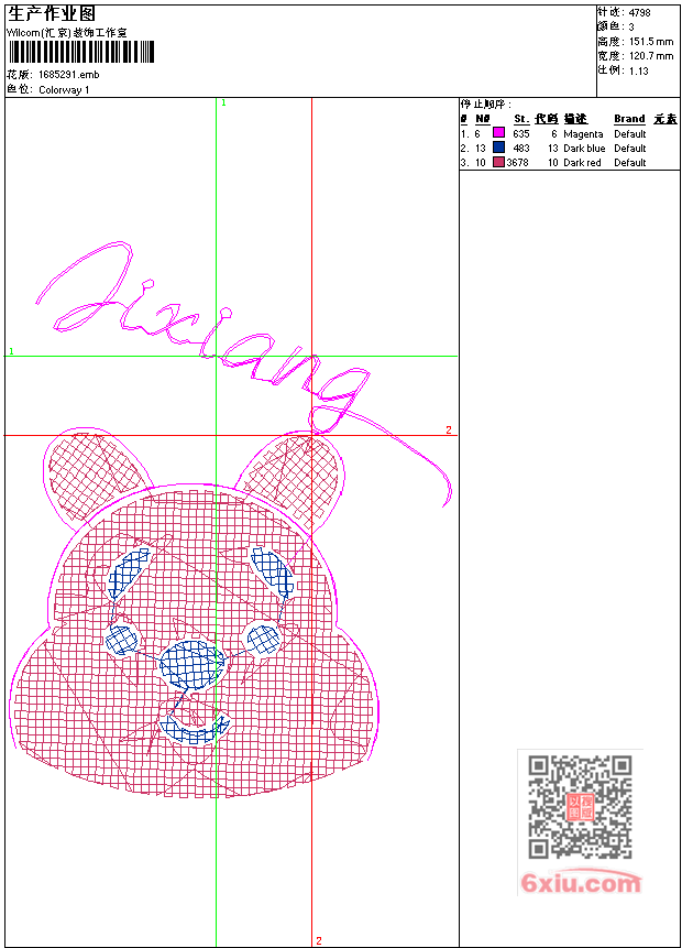 - 版带文件需绣花软件方可打开,可配色打印导出各种格式或直接上机绣。如无绣花软件可下载1:1模拟效果图。