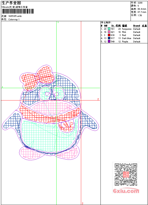 - 版带文件需绣花软件方可打开,可配色打印导出各种格式或直接上机绣。如无绣花软件可下载1:1模拟效果图。