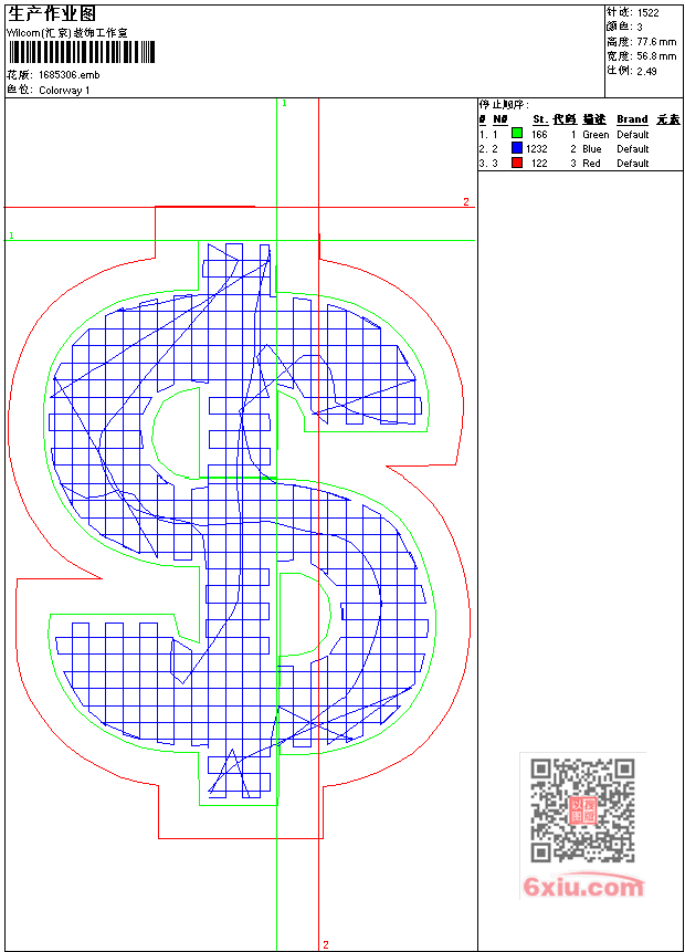 - emb花版参数: 大小:20.50 KB / 尺寸:57*78[毫米] / 针数:1522针 / 线色:3 / 格式:emb / 版本:9