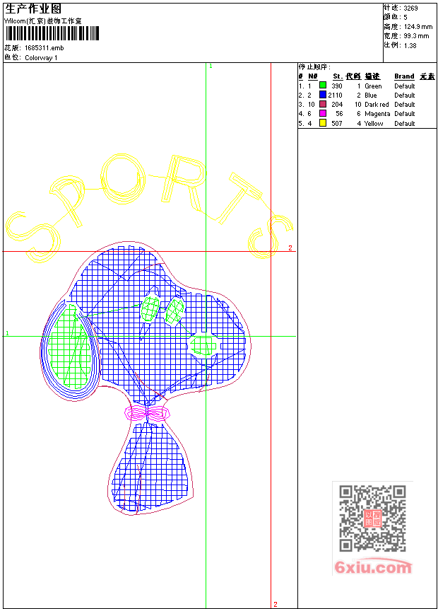 - emb花版参数: 大小:30.00 KB / 尺寸:99*125[毫米] / 针数:3269针 / 线色:5 / 格式:emb / 版本:9