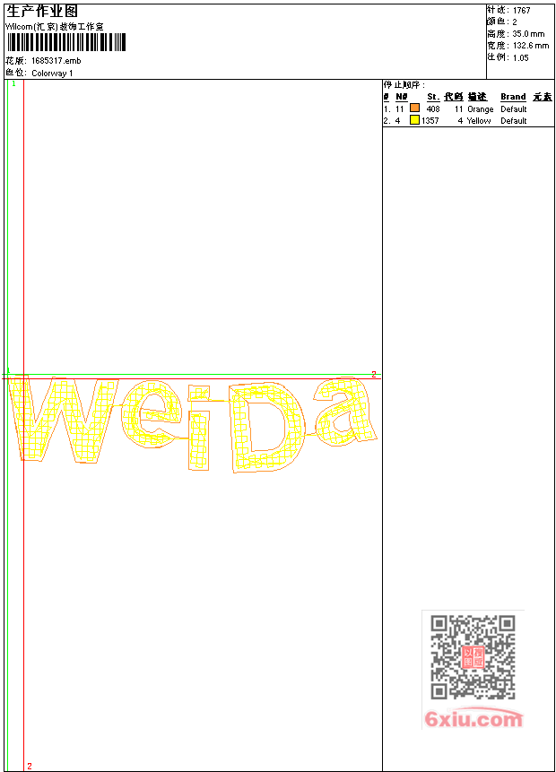 - emb花版参数: 大小:23.00 KB / 尺寸:133*35[毫米] / 针数:1767针 / 线色:2 / 格式:emb / 版本:9