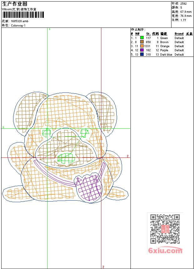 - 版带文件需绣花软件方可打开,可配色打印导出各种格式或直接上机绣。如无绣花软件可下载1:1模拟效果图。
