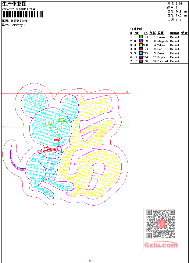 - 版带文件需绣花软件方可打开,可配色打印导出各种格式或直接上机绣。如无绣花软件可下载1:1模拟效果图。