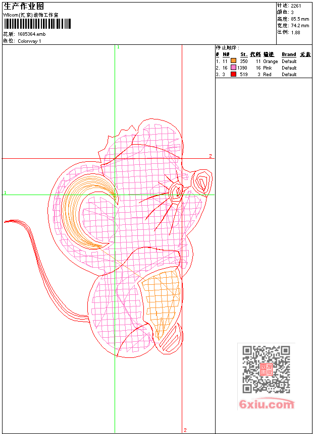 - 版带文件需绣花软件方可打开,可配色打印导出各种格式或直接上机绣。如无绣花软件可下载1:1模拟效果图。
