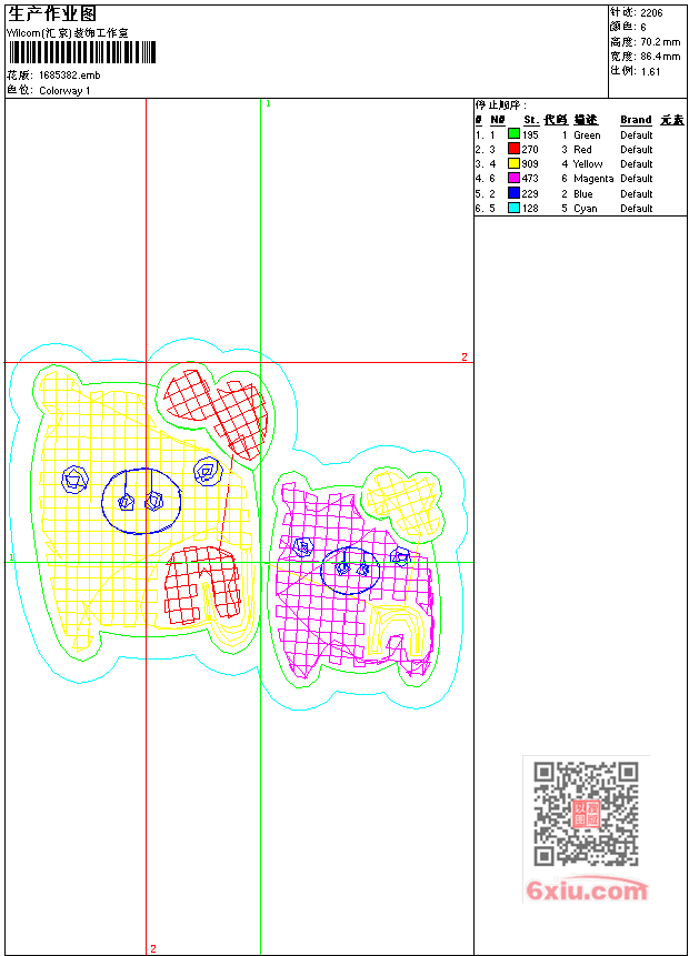 - emb花版参数: 大小:32.00 KB / 尺寸:86*70[毫米] / 针数:2206针 / 线色:6 / 格式:emb / 版本:9