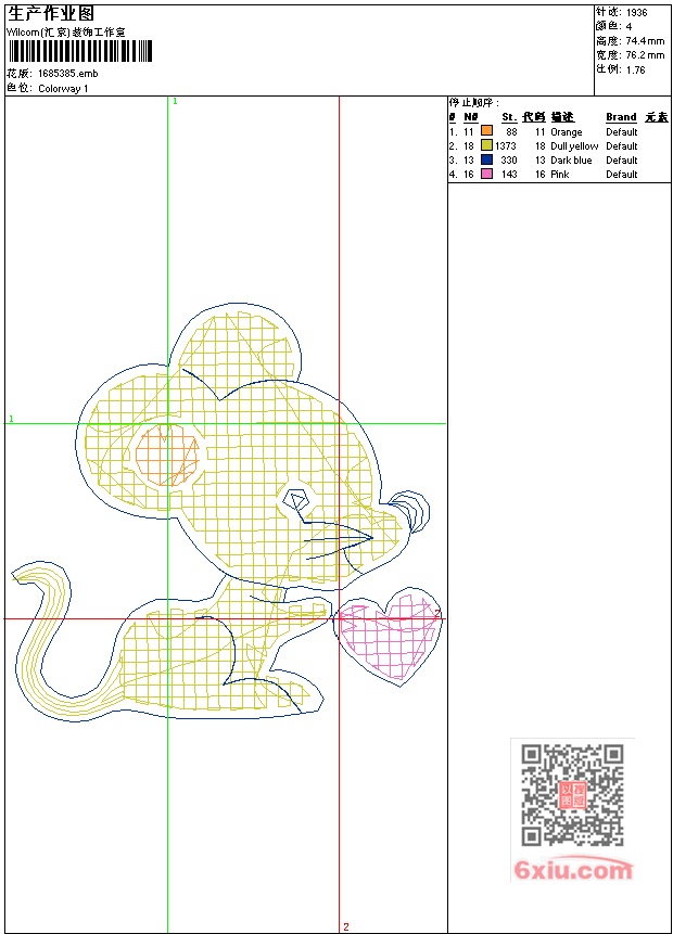 - 版带文件需绣花软件方可打开,可配色打印导出各种格式或直接上机绣。如无绣花软件可下载1:1模拟效果图。