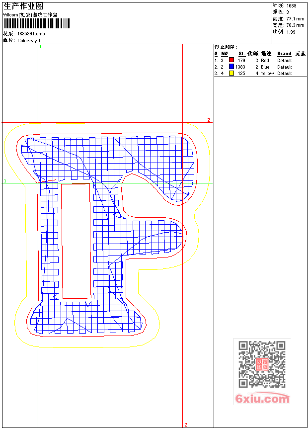 - emb花版参数: 大小:21.50 KB / 尺寸:70*77[毫米] / 针数:1689针 / 线色:3 / 格式:emb / 版本:9