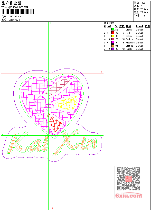 - 版带文件需绣花软件方可打开,可配色打印导出各种格式或直接上机绣。如无绣花软件可下载1:1模拟效果图。