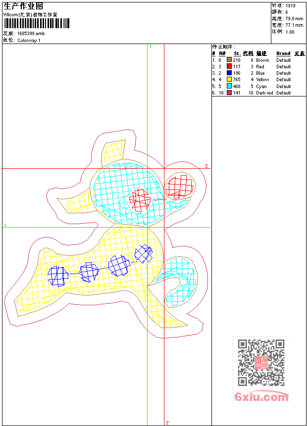 - emb花版参数: 大小:31.00 KB / 尺寸:77*79[毫米] / 针数:1919针 / 线色:6 / 格式:emb / 版本:9