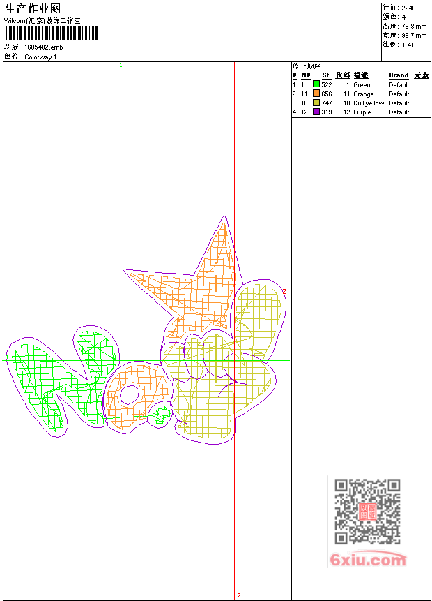 - 版带文件需绣花软件方可打开,可配色打印导出各种格式或直接上机绣。如无绣花软件可下载1:1模拟效果图。