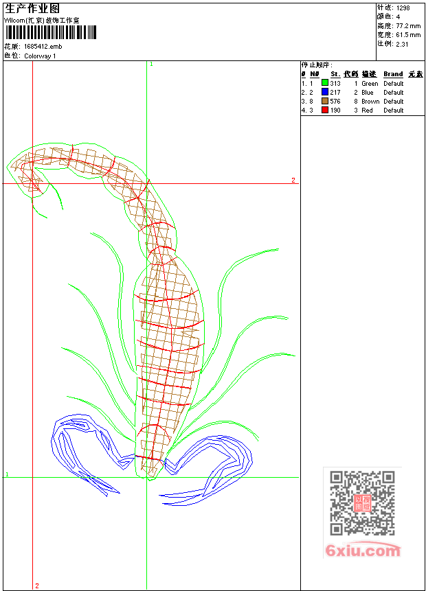- emb花版参数: 大小:26.00 KB / 尺寸:61*77[毫米] / 针数:1298针 / 线色:4 / 格式:emb / 版本:9
