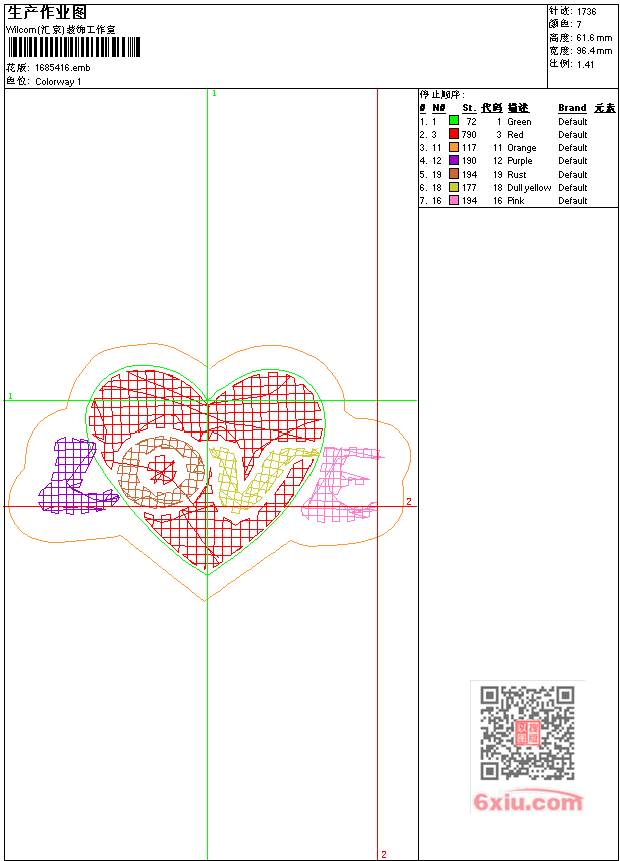 - 版带文件需绣花软件方可打开,可配色打印导出各种格式或直接上机绣。如无绣花软件可下载1:1模拟效果图。