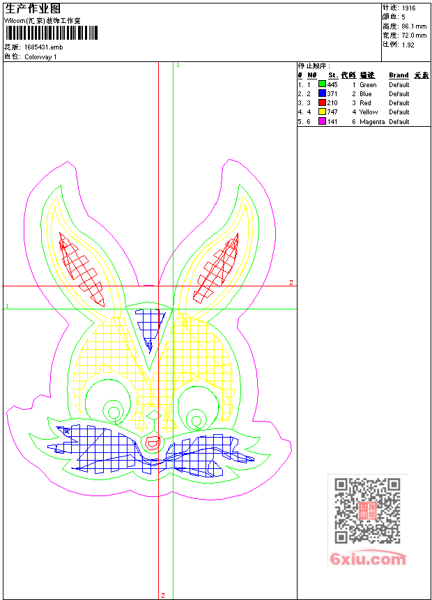 - emb花版参数: 大小:23.00 KB / 尺寸:72*86[毫米] / 针数:1916针 / 线色:5 / 格式:emb / 版本:9