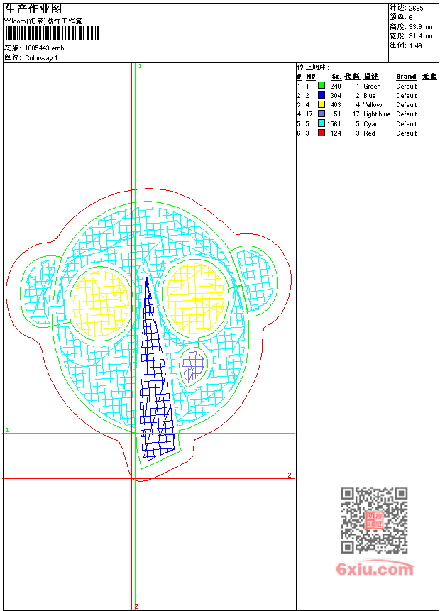 - emb花版参数: 大小:29.50 KB / 尺寸:91*94[毫米] / 针数:2685针 / 线色:6 / 格式:emb / 版本:9