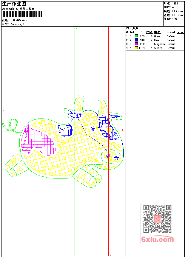 - 版带文件需绣花软件方可打开,可配色打印导出各种格式或直接上机绣。如无绣花软件可下载1:1模拟效果图。