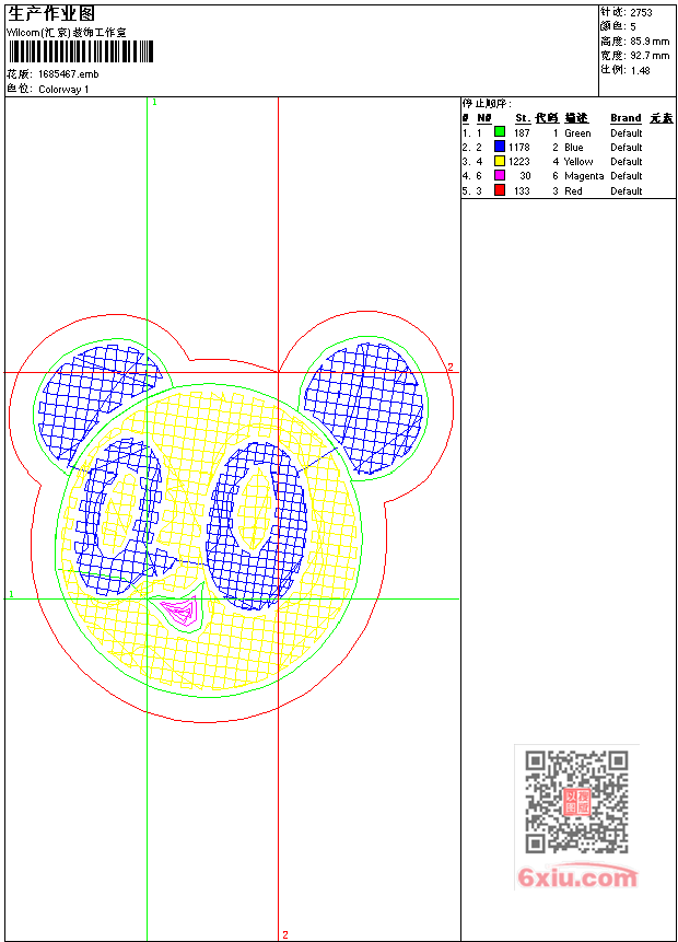 - emb花版参数: 大小:29.00 KB / 尺寸:93*86[毫米] / 针数:2753针 / 线色:5 / 格式:emb / 版本:9