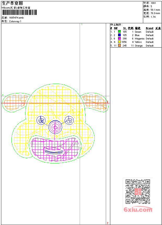 - 版带文件需绣花软件方可打开,可配色打印导出各种格式或直接上机绣。如无绣花软件可下载1:1模拟效果图。