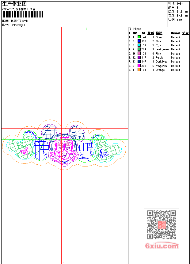 - 版带文件需绣花软件方可打开,可配色打印导出各种格式或直接上机绣。如无绣花软件可下载1:1模拟效果图。