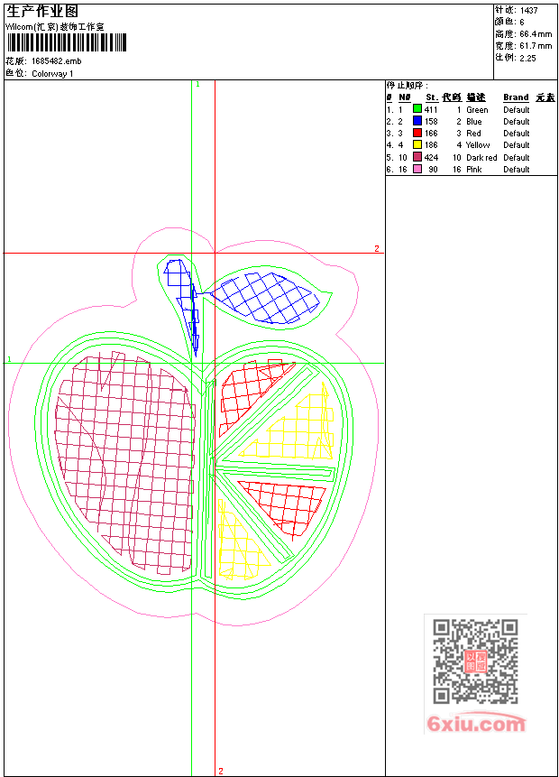 - emb花版参数: 大小:25.00 KB / 尺寸:62*66[毫米] / 针数:1437针 / 线色:6 / 格式:emb / 版本:9