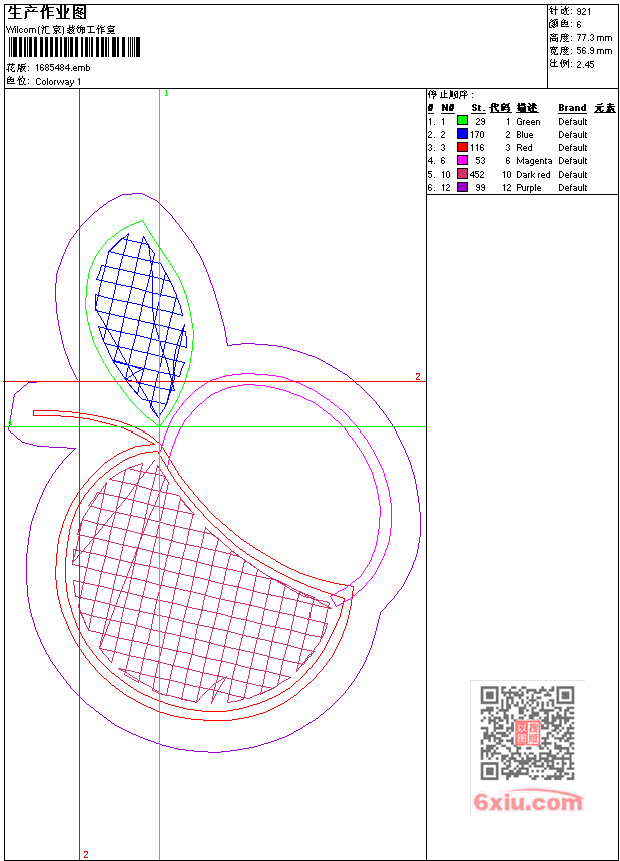 - emb花版参数: 大小:22.50 KB / 尺寸:57*77[毫米] / 针数:921针 / 线色:6 / 格式:emb / 版本:9