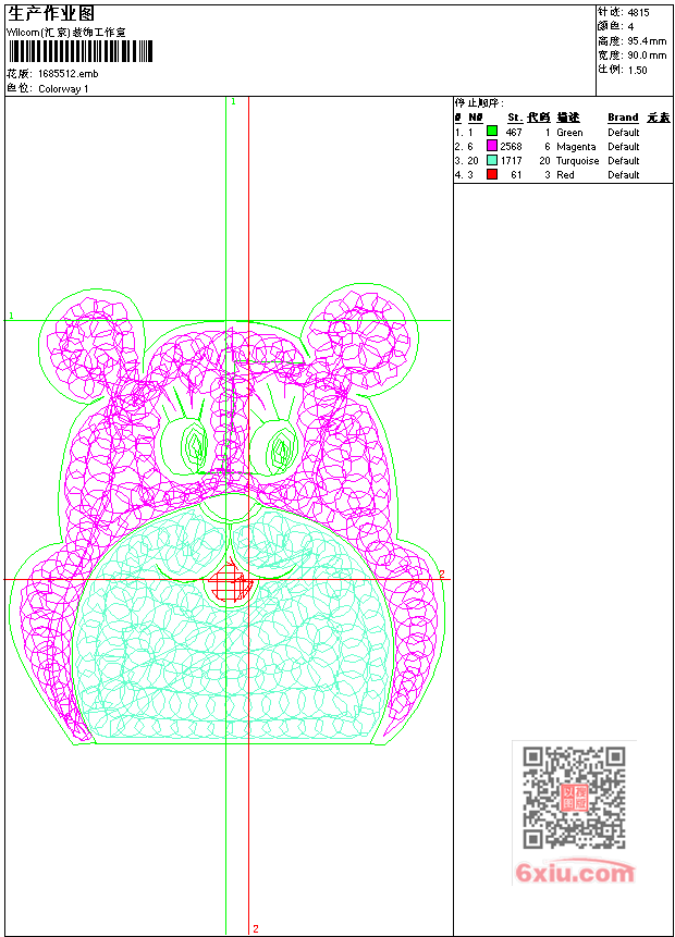 - 版带文件需绣花软件方可打开,可配色打印导出各种格式或直接上机绣。如无绣花软件可下载1:1模拟效果图。