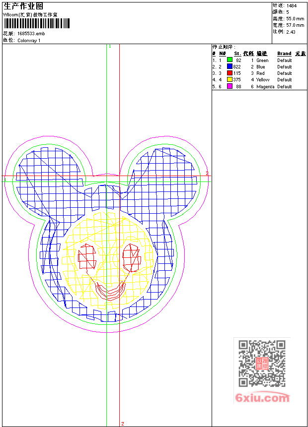 - emb花版参数: 大小:24.50 KB / 尺寸:57*55[毫米] / 针数:1484针 / 线色:5 / 格式:emb / 版本:9