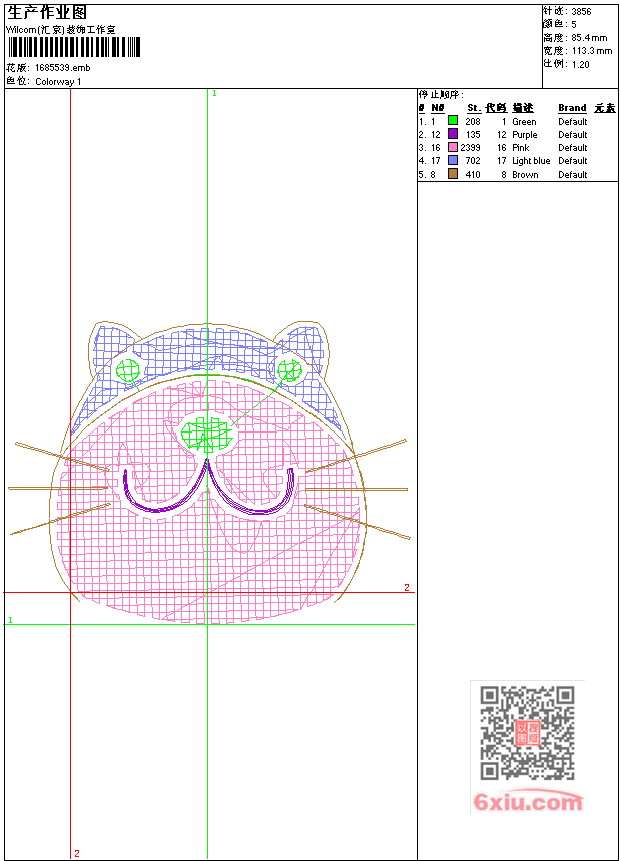 - 版带文件需绣花软件方可打开,可配色打印导出各种格式或直接上机绣。如无绣花软件可下载1:1模拟效果图。