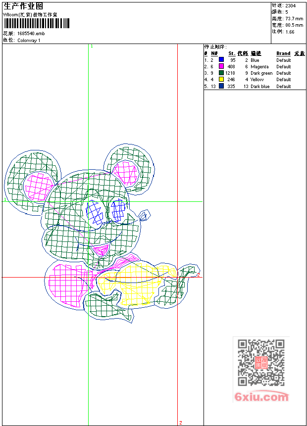 - 版带文件需绣花软件方可打开,可配色打印导出各种格式或直接上机绣。如无绣花软件可下载1:1模拟效果图。