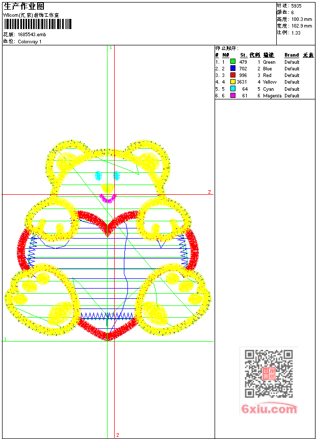 - emb花版参数: 大小:82.50 KB / 尺寸:103*100[毫米] / 针数:5935针 / 线色:6 / 格式:emb / 版本:9