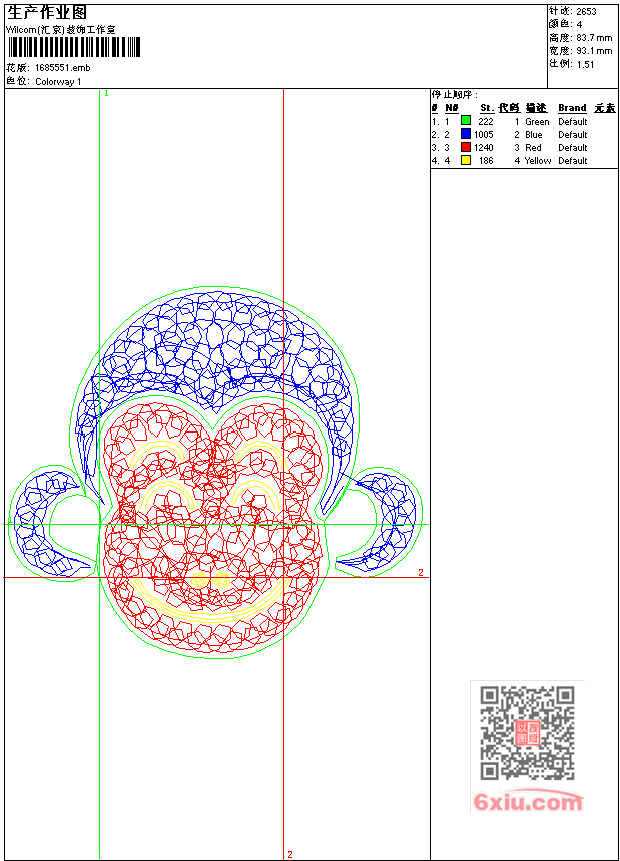 - emb花版参数: 大小:32.50 KB / 尺寸:93*84[毫米] / 针数:2653针 / 线色:4 / 格式:emb / 版本:9