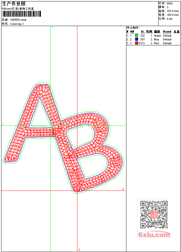 - emb花版参数: 大小:37.50 KB / 尺寸:168*153[毫米] / 针数:6002针 / 线色:3 / 格式:emb / 版本:9