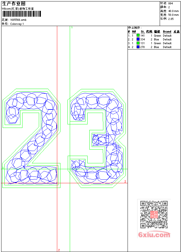 - emb花版参数: 大小:22.50 KB / 尺寸:50*40[毫米] / 针数:884针 / 线色:2 / 格式:emb / 版本:9