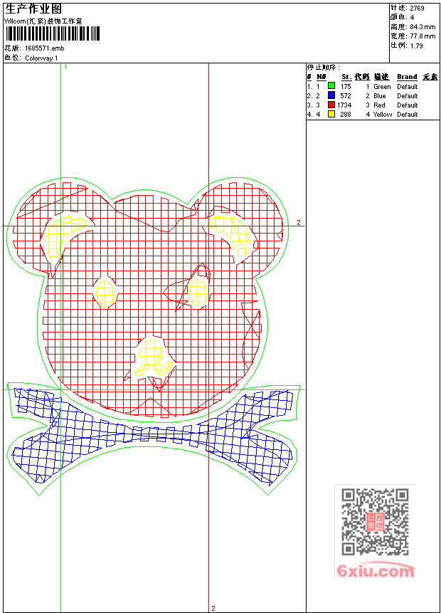 - 版带文件需绣花软件方可打开,可配色打印导出各种格式或直接上机绣。如无绣花软件可下载1:1模拟效果图。