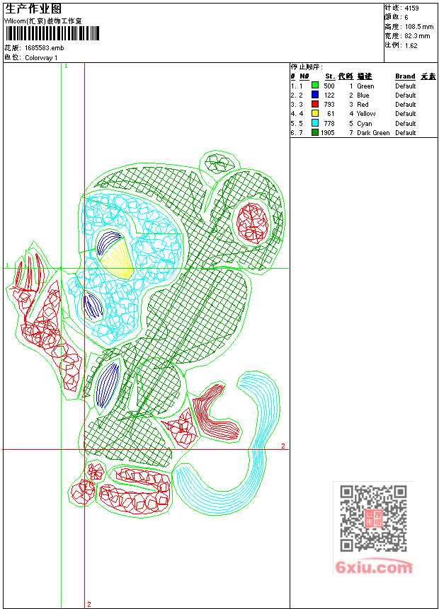 - 版带文件需绣花软件方可打开,可配色打印导出各种格式或直接上机绣。如无绣花软件可下载1:1模拟效果图。