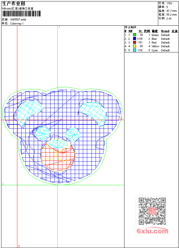 - emb花版参数: 大小:25.50 KB / 尺寸:58*48[毫米] / 针数:1763针 / 线色:5 / 格式:emb / 版本:9
