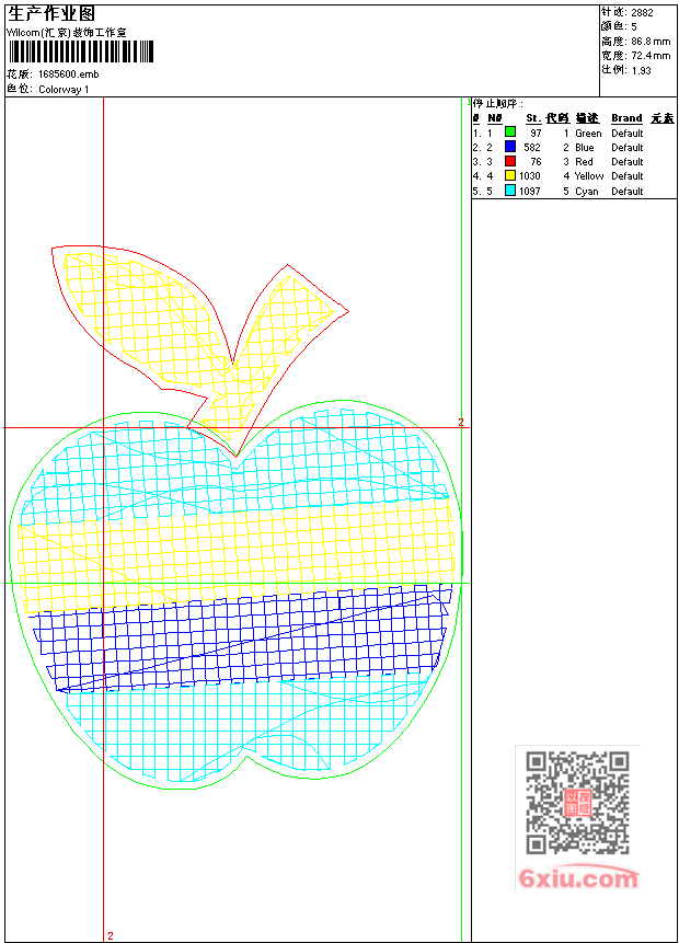 - emb花版参数: 大小:24.00 KB / 尺寸:72*87[毫米] / 针数:2882针 / 线色:5 / 格式:emb / 版本:9