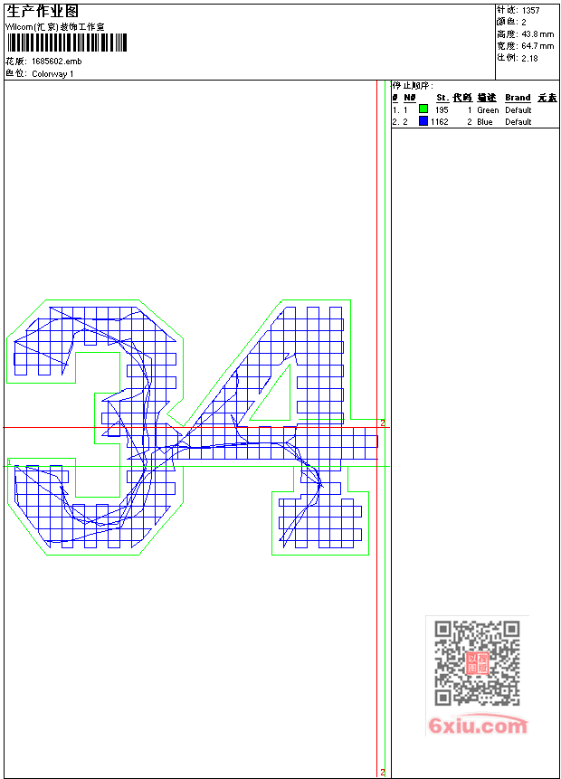 - emb花版参数: 大小:18.50 KB / 尺寸:65*44[毫米] / 针数:1357针 / 线色:2 / 格式:emb / 版本:9