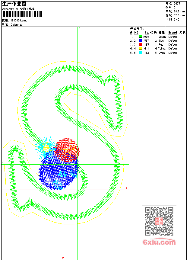 - emb花版参数: 大小:44.00 KB / 尺寸:53*69[毫米] / 针数:2435针 / 线色:5 / 格式:emb / 版本:9