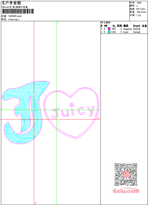 - 版带文件需绣花软件方可打开,可配色打印导出各种格式或直接上机绣。如无绣花软件可下载1:1模拟效果图。