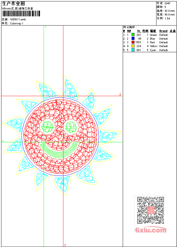 - emb花版参数: 大小:34.50 KB / 尺寸:91*92[毫米] / 针数:2947针 / 线色:5 / 格式:emb / 版本:9