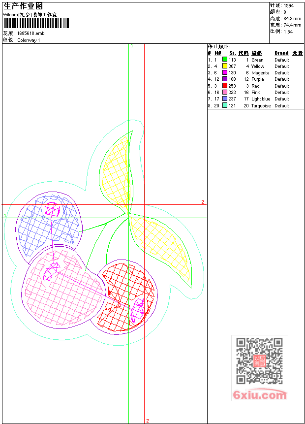 - 版带文件需绣花软件方可打开,可配色打印导出各种格式或直接上机绣。如无绣花软件可下载1:1模拟效果图。