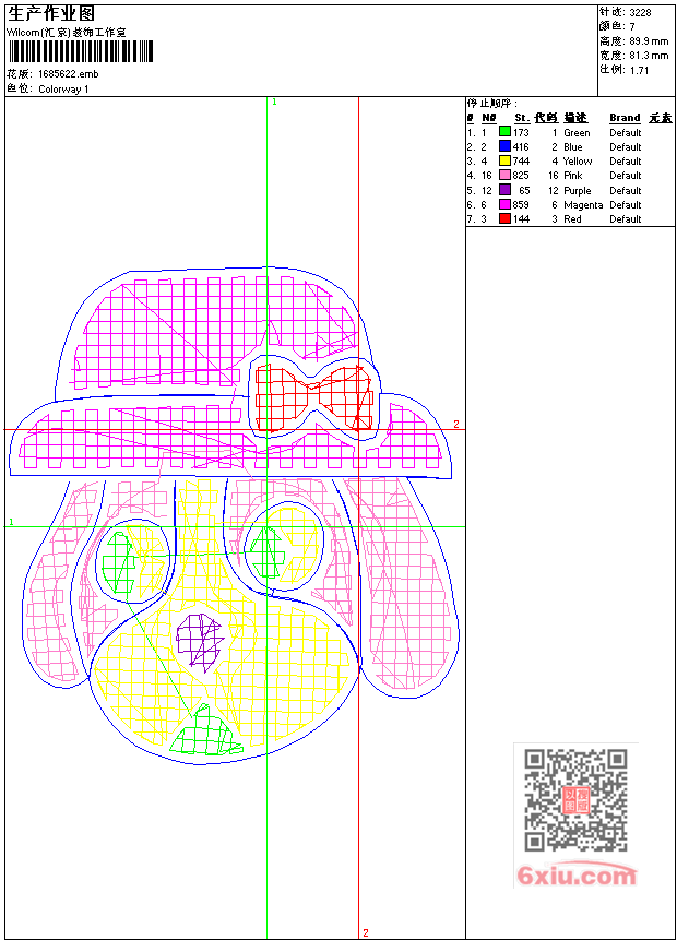 - 版带文件需绣花软件方可打开,可配色打印导出各种格式或直接上机绣。如无绣花软件可下载1:1模拟效果图。